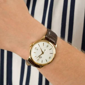 - Orient Bambino – еталон класики. Вигнуте скло, чистий циферблат, тонкий корпус, ремінець зі шкіри. Ідеально під діловий стиль.