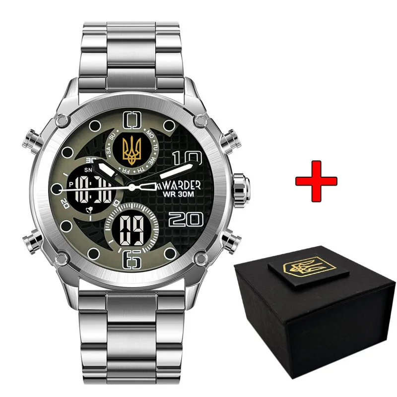 Годинник наручний Awarder 017 Тризуб Золото Silver-Black Steel