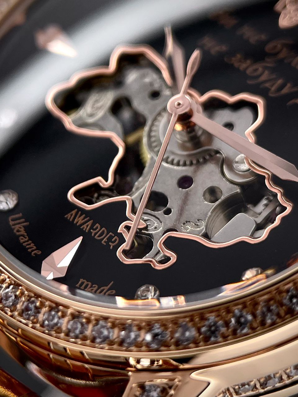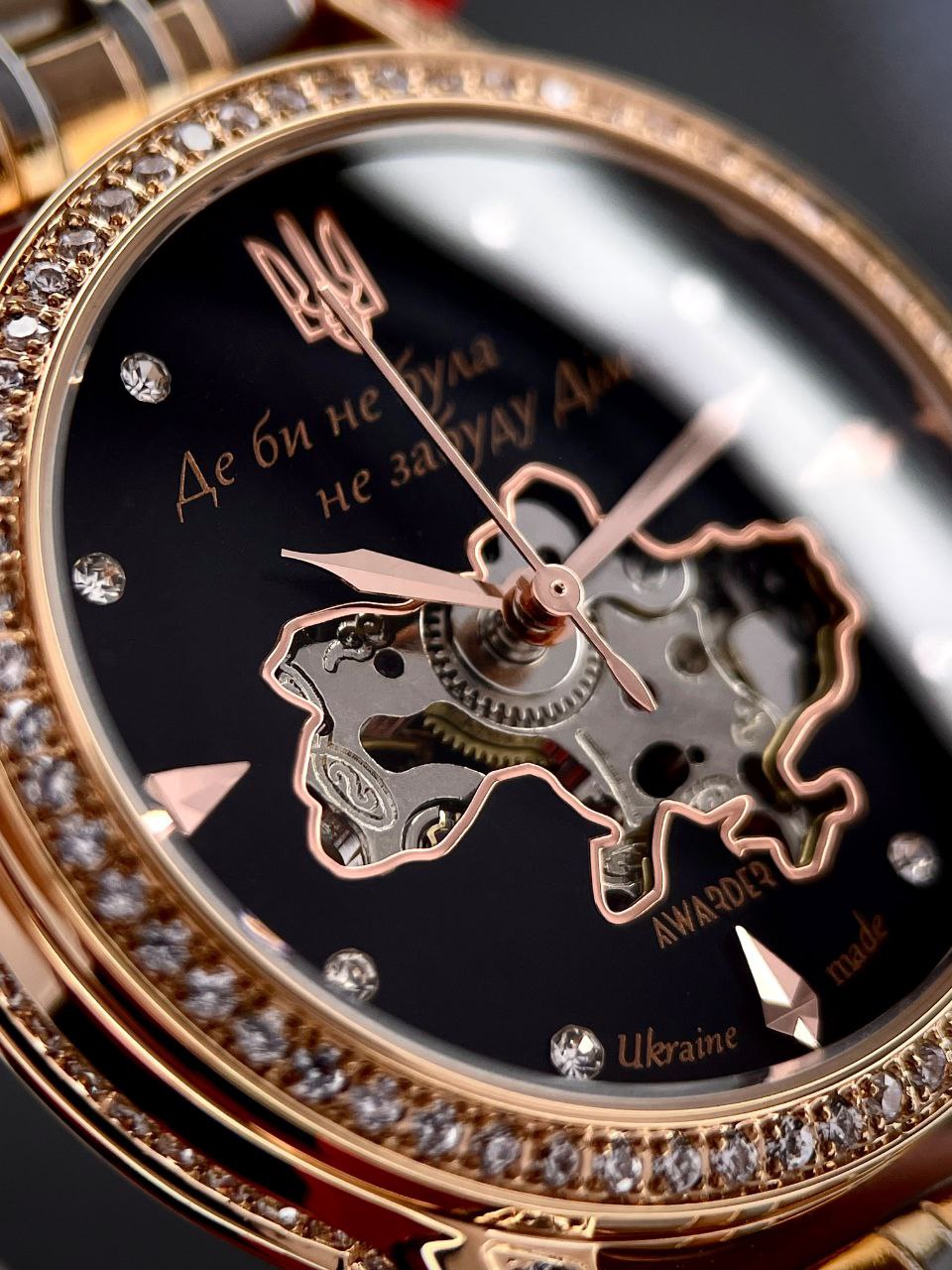 Позначок: Жіночі годинники з камінцями, Жіночі годинники з маленьким циферблатом, Наручні годинники з картою України, Наручні годинники з українською символікою, Подарункові годинники, Позолочені жіночі годинники