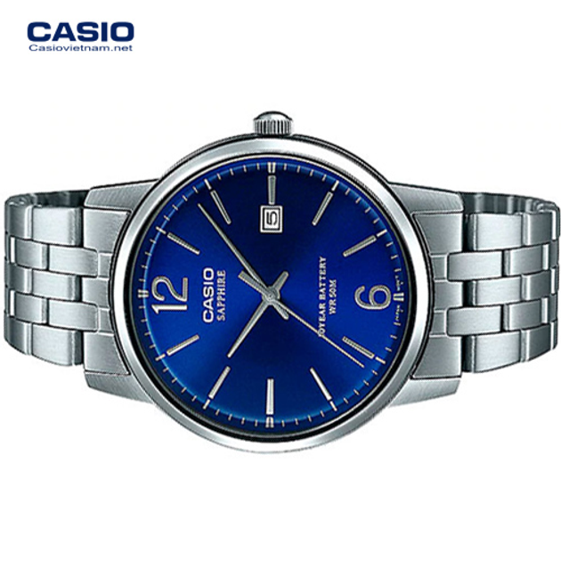 Casio MTS-110D-2A виглядає, як холодна зброя у світі годинників. Сталевий корпус і браслет сяють так, що навіть сонце заздрить. Сапфірове скло можна подряпати хіба що діамантом, але в тебе його немає. Водозахист 50 м: годинник витримає тиск 5 АТМ. Це Casio: мінімум функцій, максимум характеру.