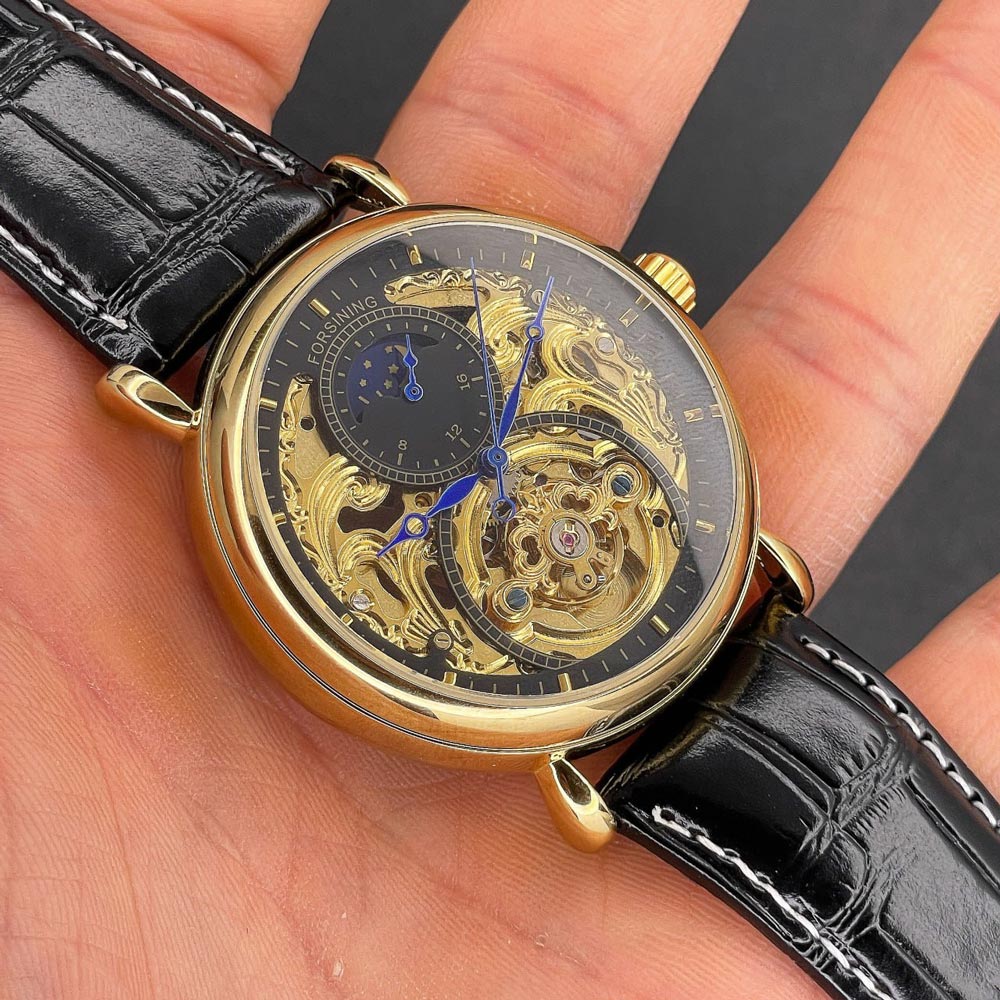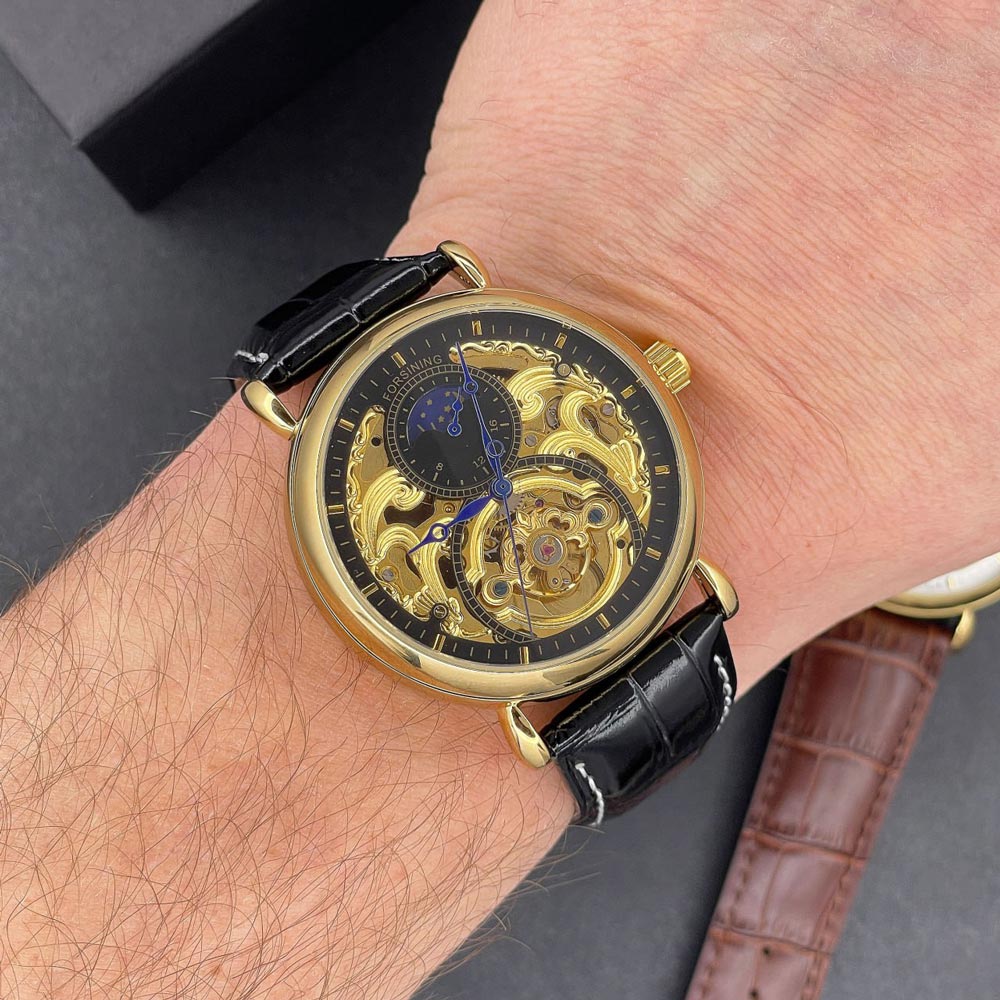 Механічний годинник Forsining 1125 Gold-Black з автопідзаводом і фазами місяця Механічний годинник Forsining 1125 Gold-Black з автопідзаводом і фазами місяця