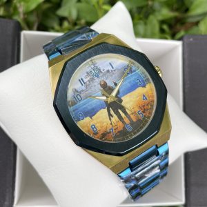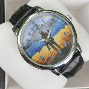 Годинник механічний «Рускій Корабль» — аксесуар, що цокає в такт легендарній фразі, яку почув увесь світ. Позолочений корпус блищить голосніше, ніж усі паради «непотопляємого флоту», а зелений нейлоновий ремінець міцніший, ніж їхні ілюзії. Механіка всередині працює безвідмовно — на відміну від систем ППО крейсера «Москва». Водозахист 3 ATM врятує від дощу, але не від долі того корабля: якщо підеш не туди, теж опинишся на дні. Це годинник-нагадування: історія вже знає фінал, і він точно не на користь ворога.