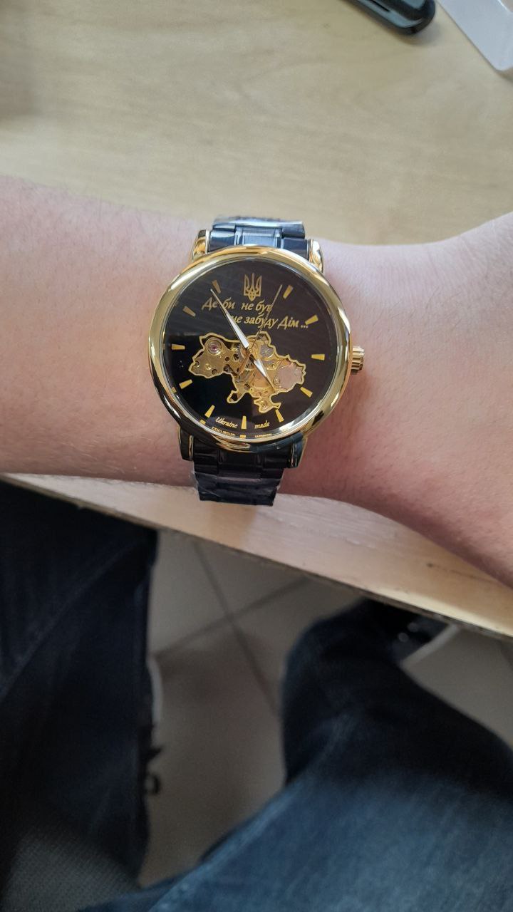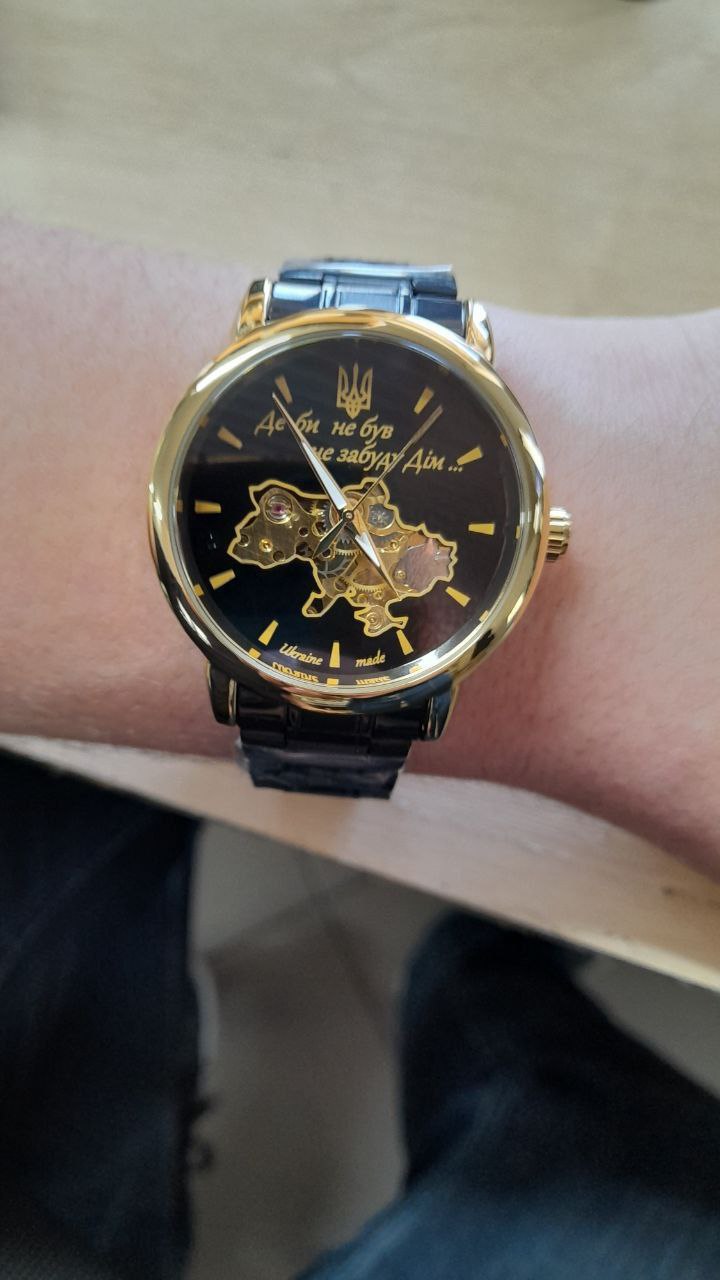 Позначок: Годинник що працює від руху, Годинники з лазерним гравіюванням, Годинники з пам'ятним написом, Годинники скелетони, Ексклюзивні наручні годинники, Наручні годинники з відкритим механізмом, Наручні годинники з картою України, Наручні годинники з металевим ремінцем, Наручні годинники з українською символікою, Подарункові годинники
