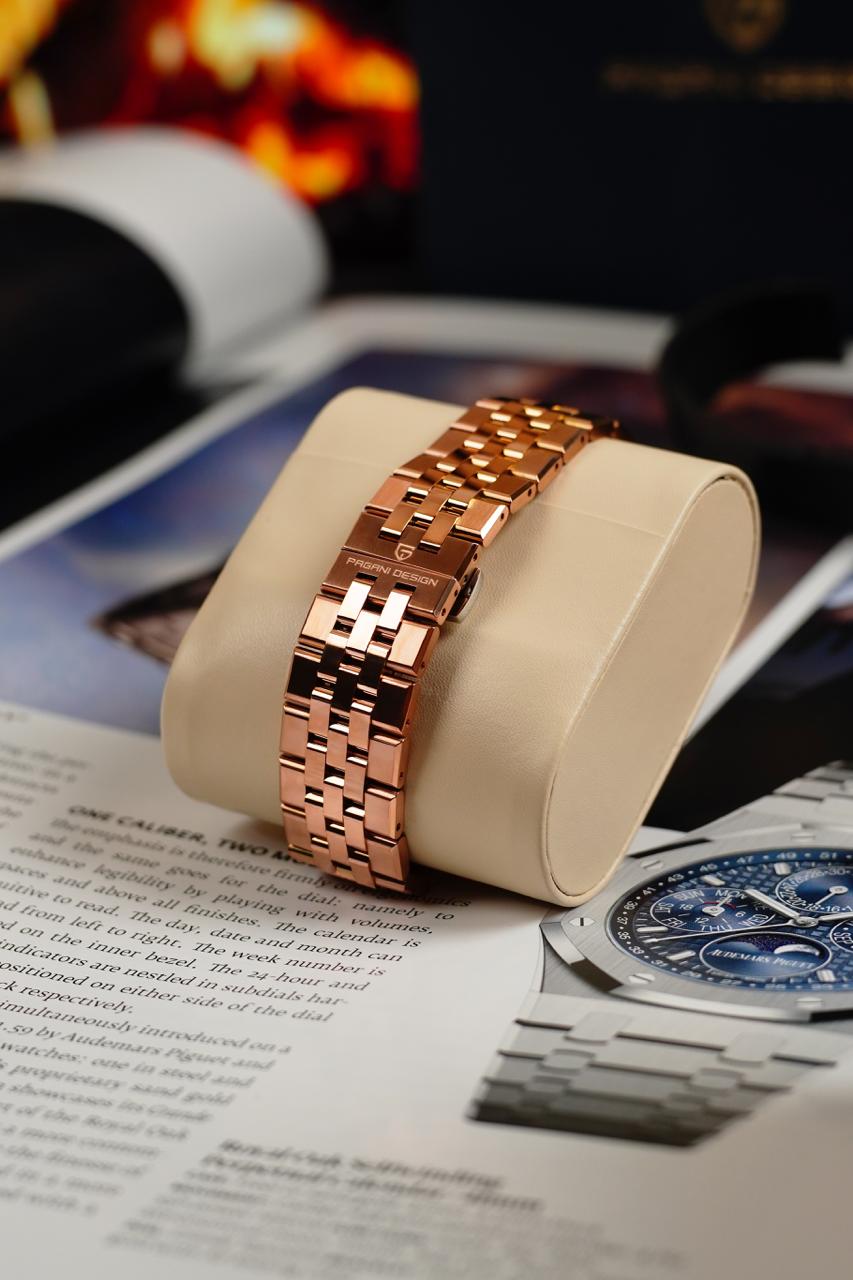 Pagani Design - це китайський бренд наручних годинників, який відомий своїми надзвичайно якісними моделями за доступною ціною. Заснований 15 серпня 2012 року. Володіючи виробничим цехом із вільним від пилу виробничим середовищем, який охоплює понад 2200 квадратних метрів, виробнича база має 20 автоматизованих виробничих ліній і повністю ручні технологічні лінії. Там доступні кілька передових вакуумних водонепроникних тестерів годинників. Виробнича база віддає пріоритет якості продукції і суворо контролює загалом 28 процесів, включаючи вибір матеріалів, виробництво, складання, пакування та відвантаження. Кожен процес має проводитися в стані контролю якості (QC), щоб гарантувати, що кожен годинник, який поставляється клієнту, є кваліфікованим продуктом. Від вибору матеріалу до доставки виробник завжди дотримується найвищих стандартів якості годинників! Бренд Pagani Design виробляє різноманітні моделі годинників, включаючи авіаційні, дайверські та хронографи. Вони використовують якісні матеріали, такі як сталь 316 та сапфірове скло, що гарантує довговічність та елегантний вигляд годинників. Основною особливістю годинників Pagani Design є використання японських механізмів, таких як Seiko, швейцарських (Ronda), що відомі своєю точністю та надійністю.