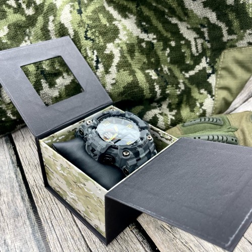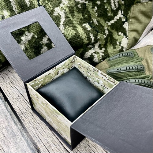 Подарункова картонна коробочка для годинника чорна-камуфляж