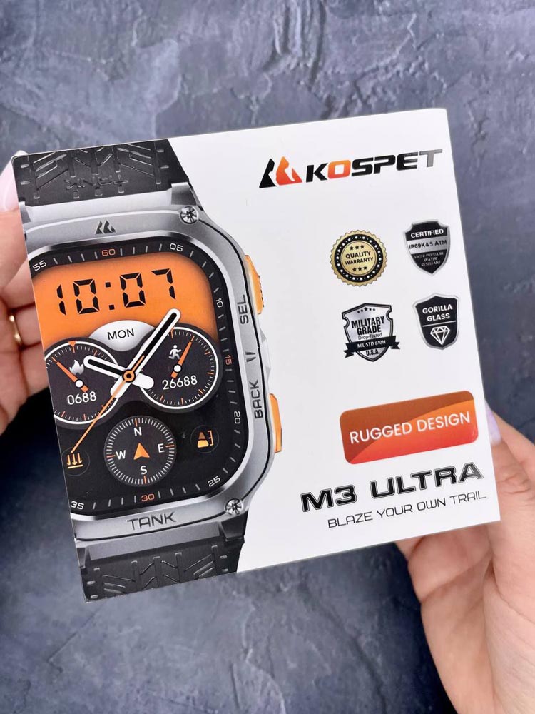 Комплексні функції годинників Kospet Tank M3 Ultra Black забезпечують повне відстеження вашого здоров’я та активності, включаючи вимір артеріального тиску, пульсометр, моніторинг сну та стресу. Їхній спортивний функціонал, такий як компас, барометр, альтиметр та крокомір, дозволяє вам ефективно виконувати будь-які фізичні вправи та тренування. За допомогою функцій сповіщень та контролю ви можете легко керувати вашими комунікаціями, камерою смартфона та музичним плеєром, а також використовувати додаткові інструменти, такі як таймер, секундомір та калькулятор. Можете приймати та здійснювати дзвінки прямо з годинника. Вологозахист IP69/5АТМ та міцний силіконовий ремінець роблять їх ідеальними для будь-яких умов.