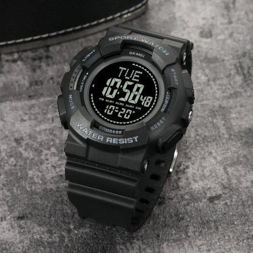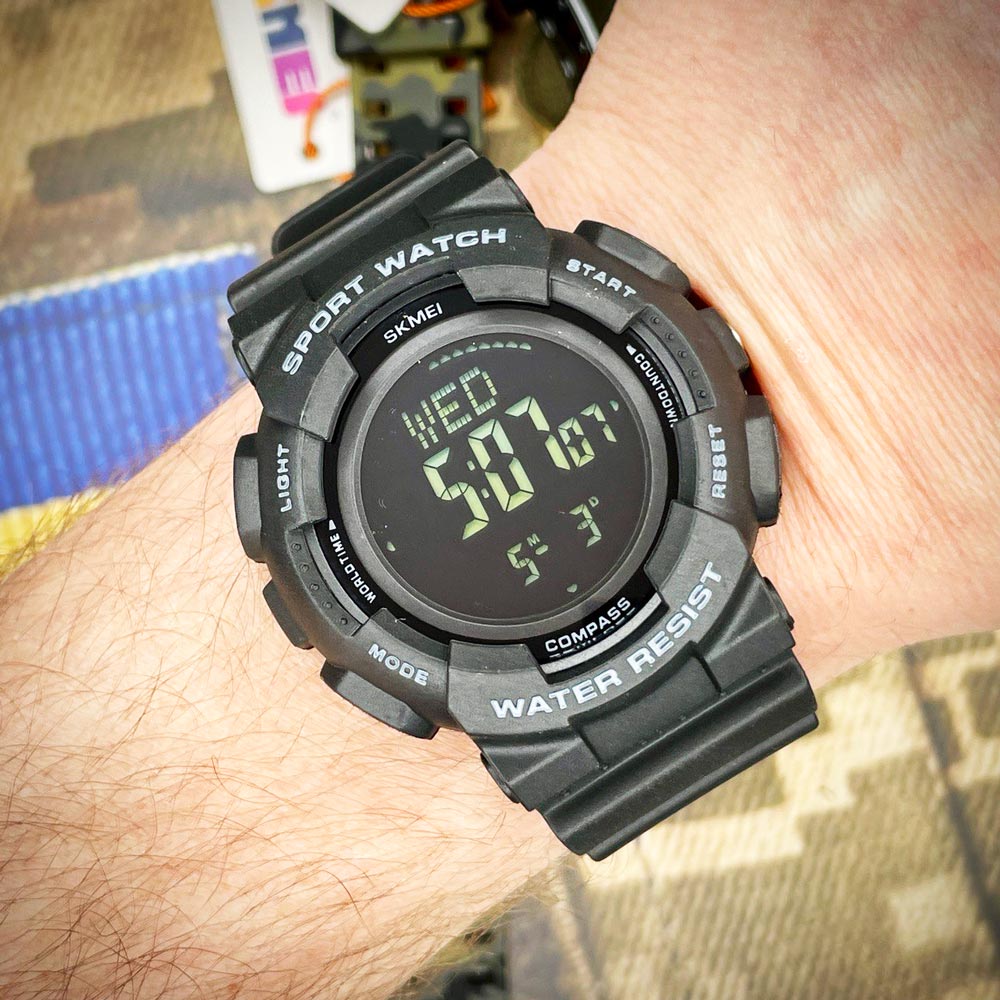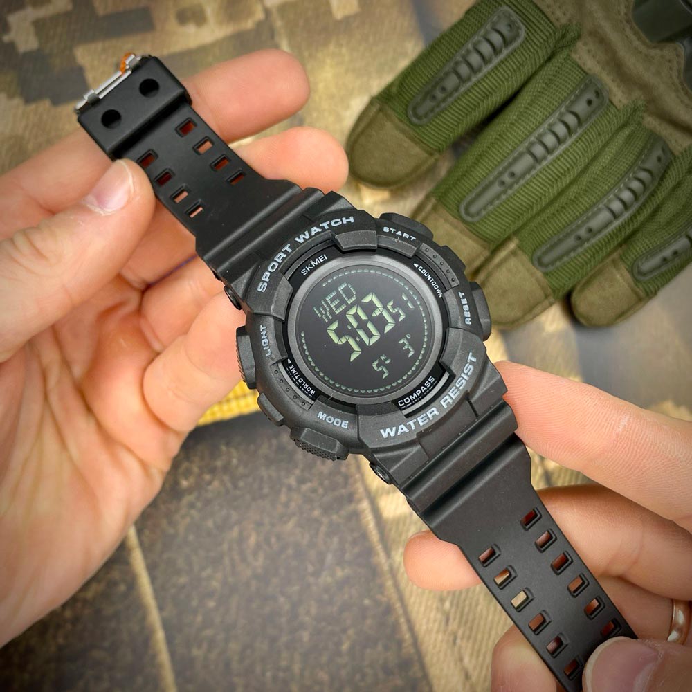 Стильний цифровий годинник з функцією “компас” – Skmei 2077BK Black+Compass