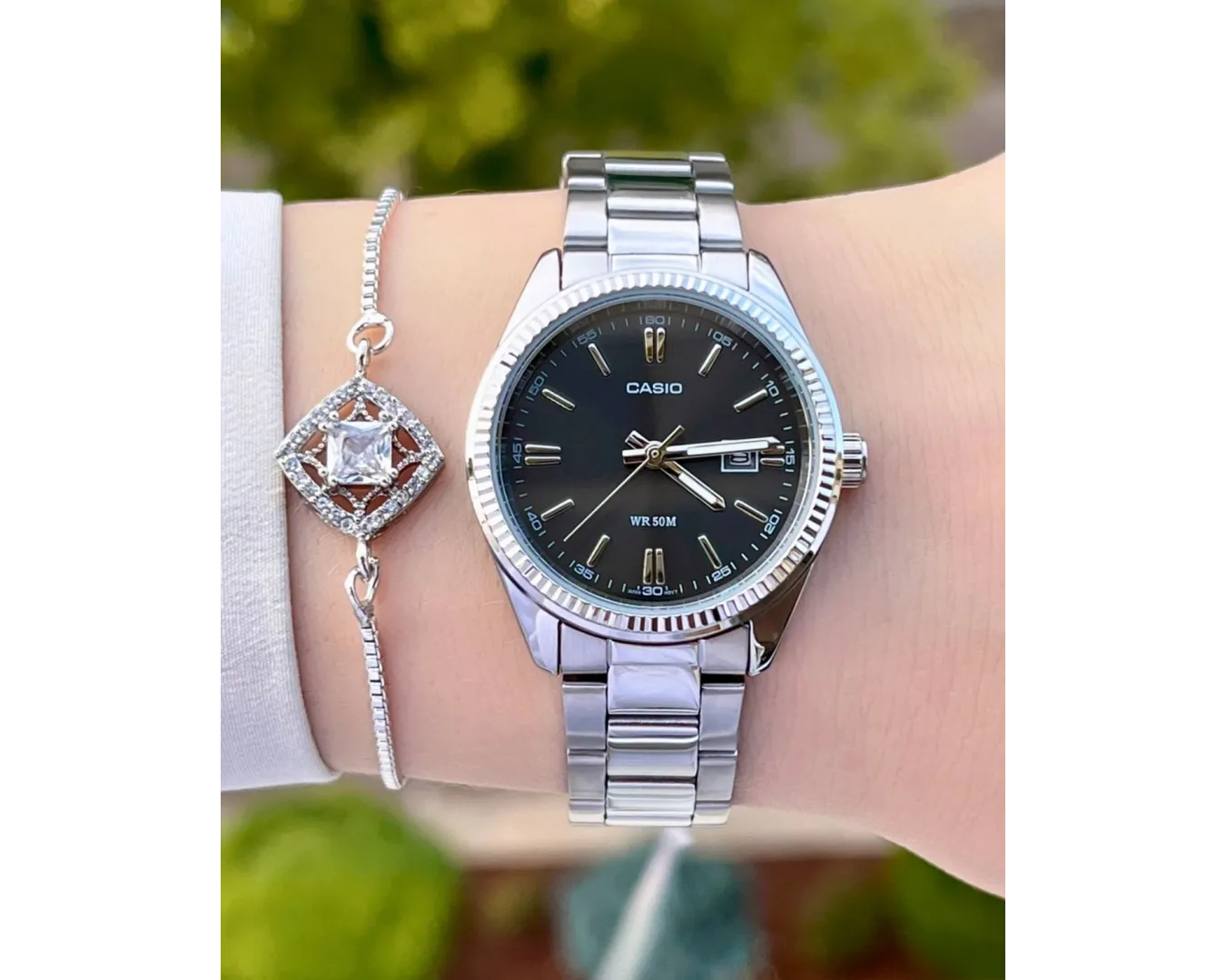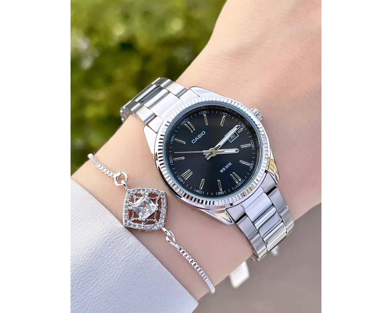 Casio LTP-1302D-1A1 – классика, которая выглядит сдержанно и серьезно, даже если твоя жизнь – сплошной хаос. Черный циферблат добавляет «статус». Серебристый корпус и браслет блестят, как твои глаза после трех бокалов вина. Кварцевый механизм точен, в отличие от твоего бывшего. Водозащита 5 ATM выдержит дождь или мытье рук, но не твои слезы.