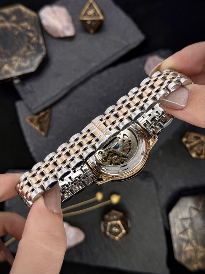 Позолочений корпус і браслет зі сталі – бо блиск і сила йдуть разом.