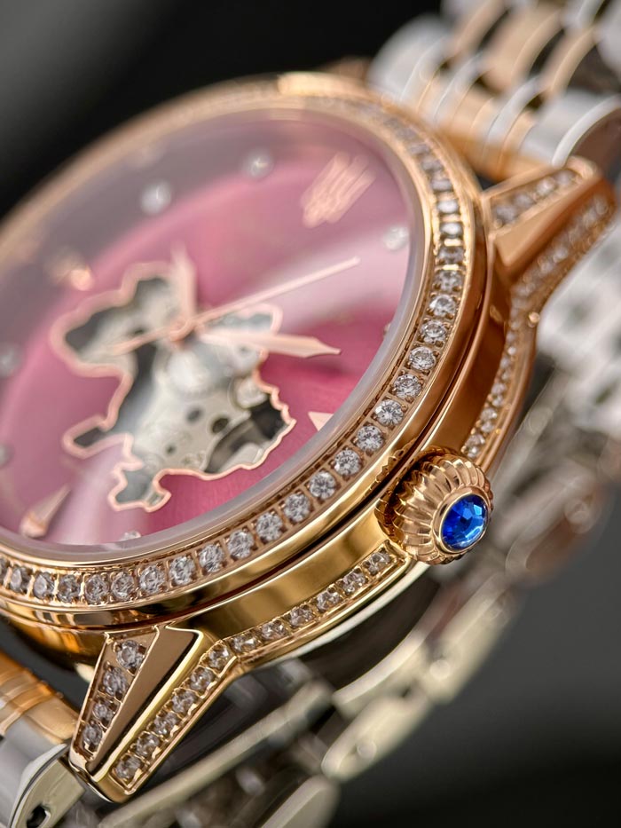 Рожевий циферблат нагадує: можна бути жіночною і брутальною одночасно.
