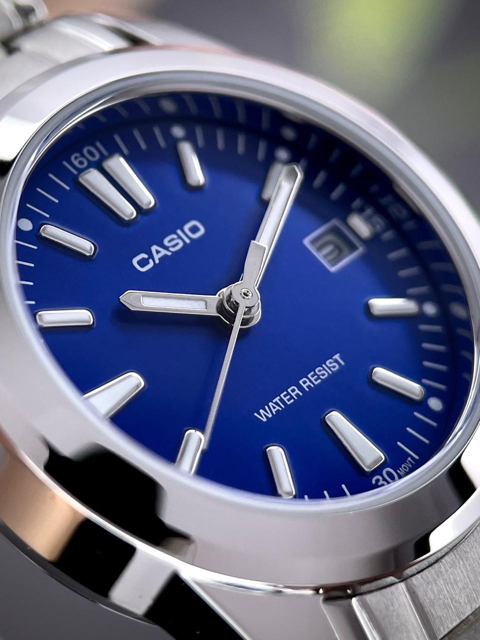 Водонепроникність 3 ATM – вистачить, щоб пережити дощ і ваші сльози після перегляду мелодрами. Люмінісцентні стрілки світяться в темряві, нагадуючи: навіть коли все згасло – Casio ще з вами.