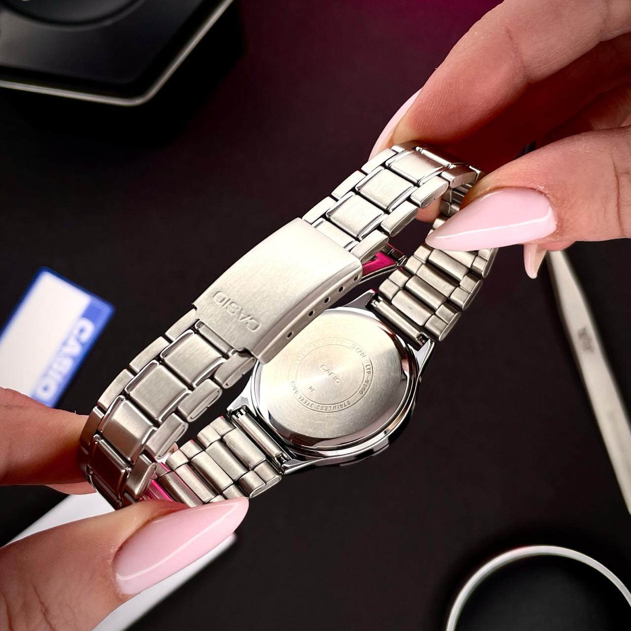 Casio LTP-V300D-4A виглядає ніжно, мов вареники з вишнями, але служить так довго, що ще й онукам залишиться. Рожевий циферблат каже «жіночність», а японський механізм – «надійність». Сталевий браслет блищить так, що сусідка з під’їзду подумає, що ти багатієш. А водозахист у 3 ATM витримає і дощ, і сльози після чергового підняття цін.